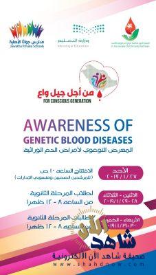 وتأتي إقامة المعرض نظرا لأهمية توعية المجتمع وتعريفهم بأمراض الدم الوراثية ، وتعزيزا لدور الجمعية الخيرية لمكافحة أمراض الدم الوراثية في نشر الوعي لدى الأبناء من الطلاب والطالبات في المرحلة الثانوية تجاه أمراض الدم الوراثية وسبل الحد من انتشارها في المجتمع في الفترة من ٢١ – ٢٥ / ٥ / ١٤٤٠ هـ على أن يخصص الاثنين والثلاثاء للبنين والأربعاء والخميس للبنات ، وسيحظى المعرض برعاية ودعم رئيس جمعية مكافحة أمراض الدم الوراثية د. سعدون بن سعد السعدون والقطاعات المشاركة إلى جانب الإدارة العامة للتعليم بالأحساء مستشفى الملك فهد ومستشفى الموسى التخصصي ومستشفى الأمير سعود بن جلوي ومركز أمراض الدم الوراثية بالأحساء والشؤون الصحية بتعليم الأحساء . هذا وقد وجهت جمعية مكافحة أمراض الدم الوراثية الدعوة لحضور تدشين المعرض غدا الأحد عند الساعة العاشرة صباحا على مسرح مدارس جواثا .