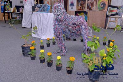 واحتوى المعرض على العديد من المجسمات والأعمال الفنية، والرسم على الرمال، والزجاج، والنقش، والتدوير المباشر.