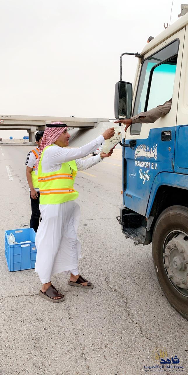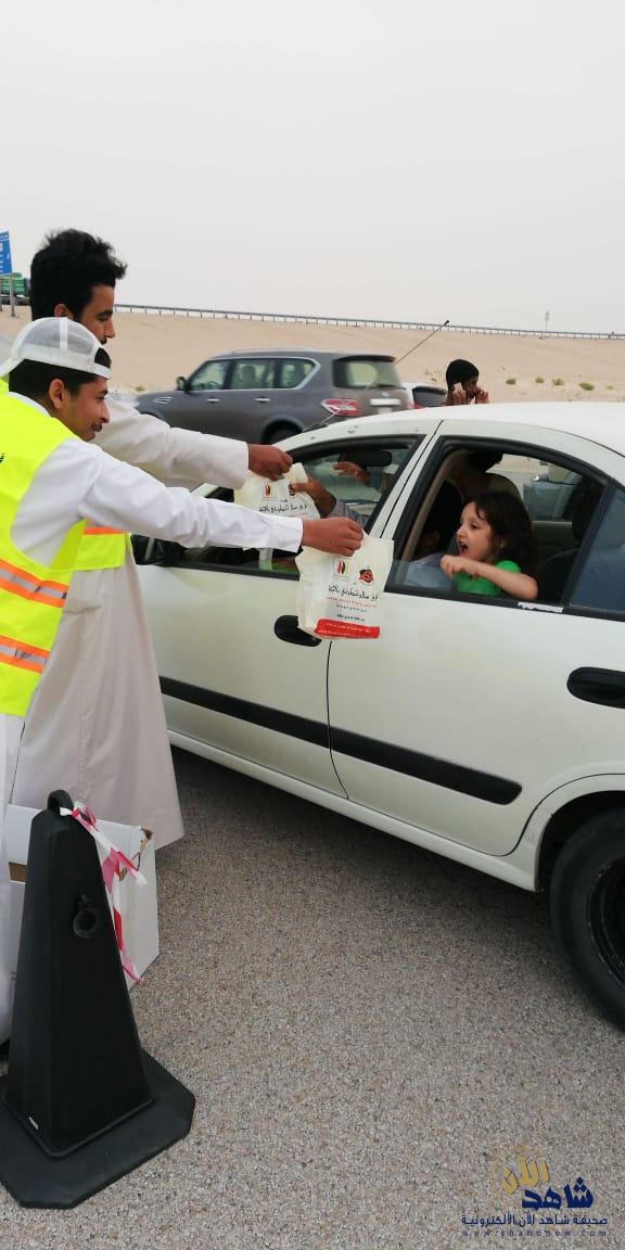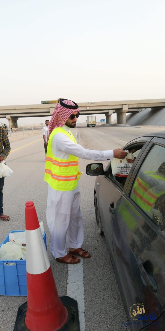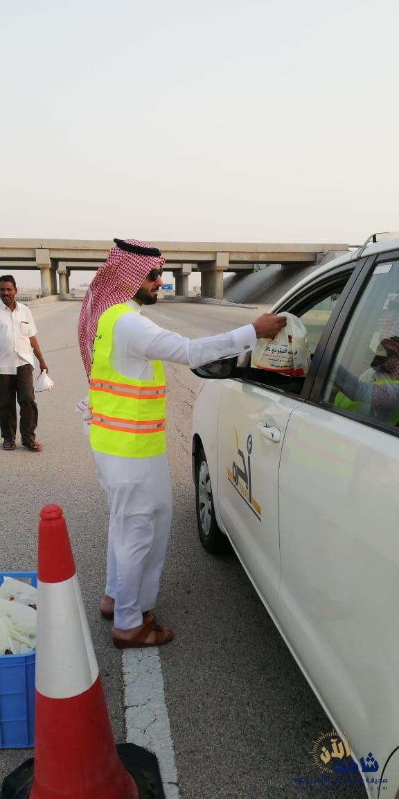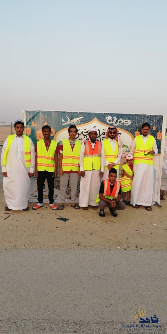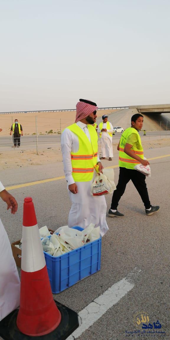 حيث يقوم الفريق قبل أذان مغرب كل يوم بإعداد وجبات الأفطار وتوزيعها على المسافرين ومرتادي الطريق .