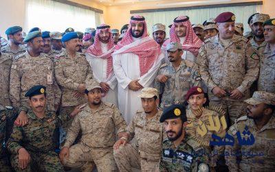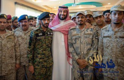 قام صاحب السمو الملكي الأمير محمد بن سلمان بن عبدالعزيز ولي العهد نائب رئيس مجلس الوزراء وزير الدفاع، اليوم، بزيارة معايدة لقطاع جازان في المنطقة الجنوبية. وكان في استقبال سمو ولي العهد لدى وصوله، صاحب السمو الملكي الأمير محمد بن عبدالعزيز بن محمد بن عبدالعزيز نائب أمير منطقة جازان، وصاحب السمو الملكي الفريق الركن فهد بن تركي بن عبدالعزيز قائد القوات المشتركة وكبار قادة وضباط المنطقة الجنوبية. ونقل سمو ولي العهد لضباط وأفراد المنطقة الجنوبية، تحيات وتقدير خادم الحرمين الشريفين الملك سلمان بن عبدالعزيز آل سعود – حفظه الله – وتهانيه لهم بحلول عيد الفطر المبارك، مؤكدا سموه اعتزازه وتقديره بالدور البطولي الذي يقومون به في حماية أرض الوطن ومقدساته، وسعادته بزيارتهم ومشاركتهم فرحة العيد. رافق سمو ولي العهد خلال الزيارة، صاحب السمو الملكي الأمير عبدالله بن بندر بن عبدالعزيز وزير الحرس الوطني، وصاحب السمو الملكي الأمير خالد بن سلمان بن عبدالعزيز نائب وزير الدفاع.