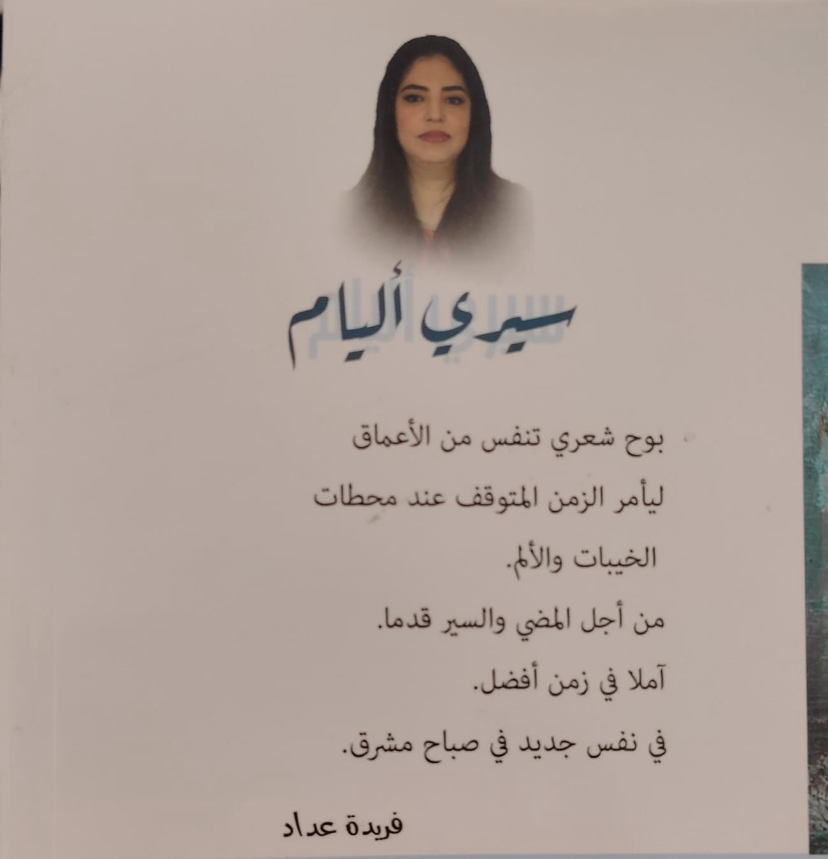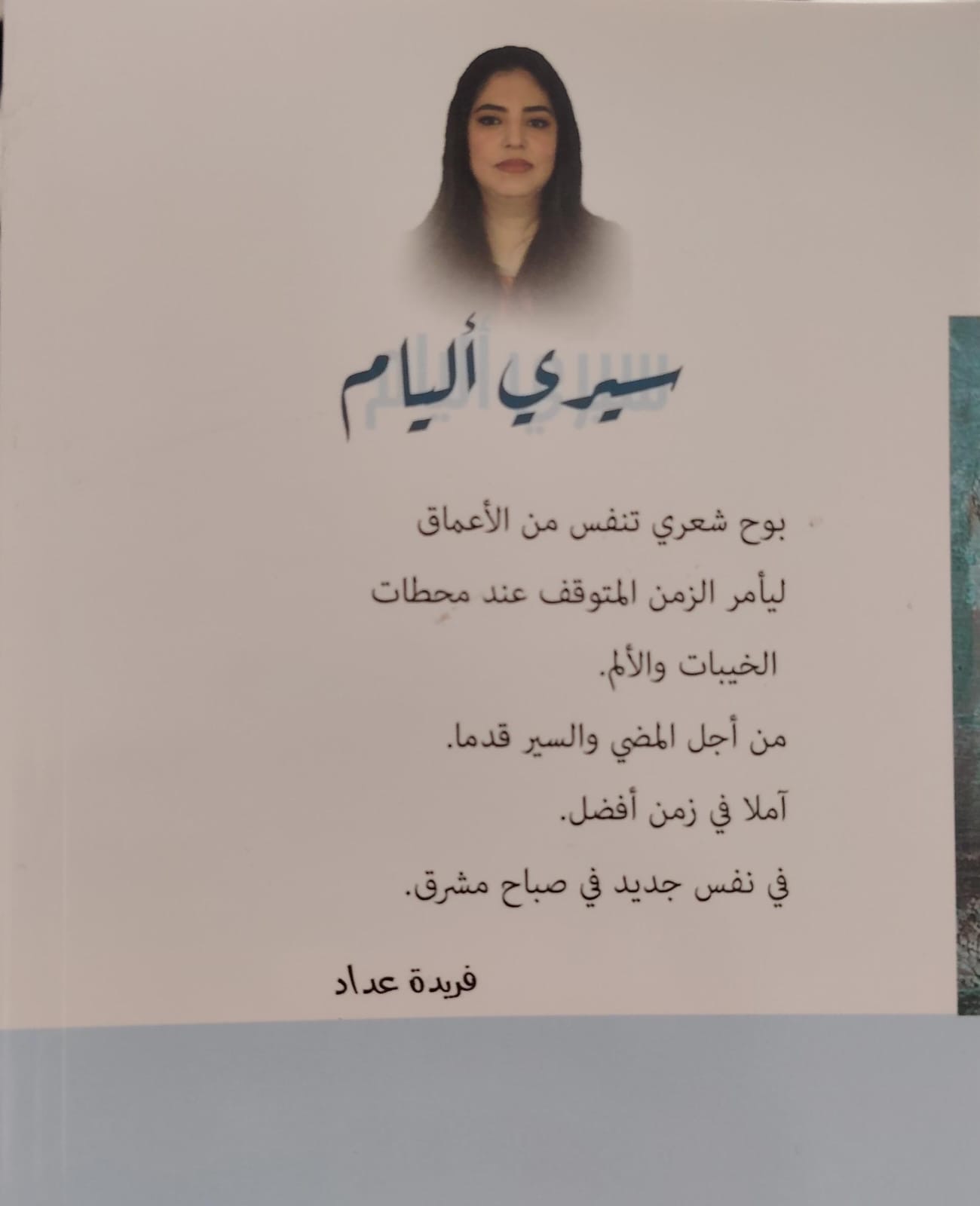 أهدت لي الشاعرة فريدة عداد كتابها "سيري أليام" الطبعة الأولى 1443 هـ / 2024م عن دار الثقافة - الدار البيضاء، مطبعة صناعة الكتاب.